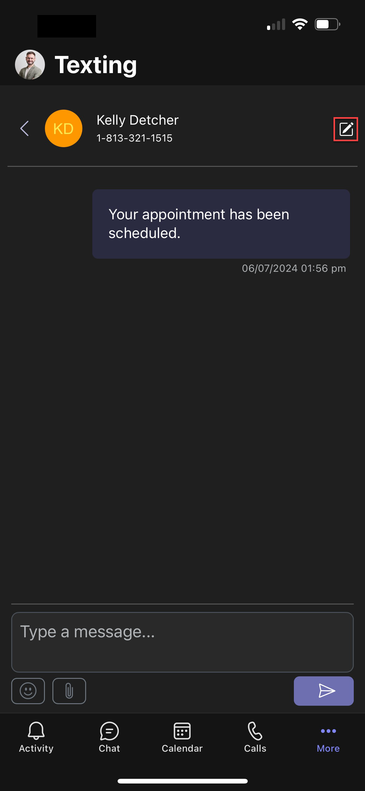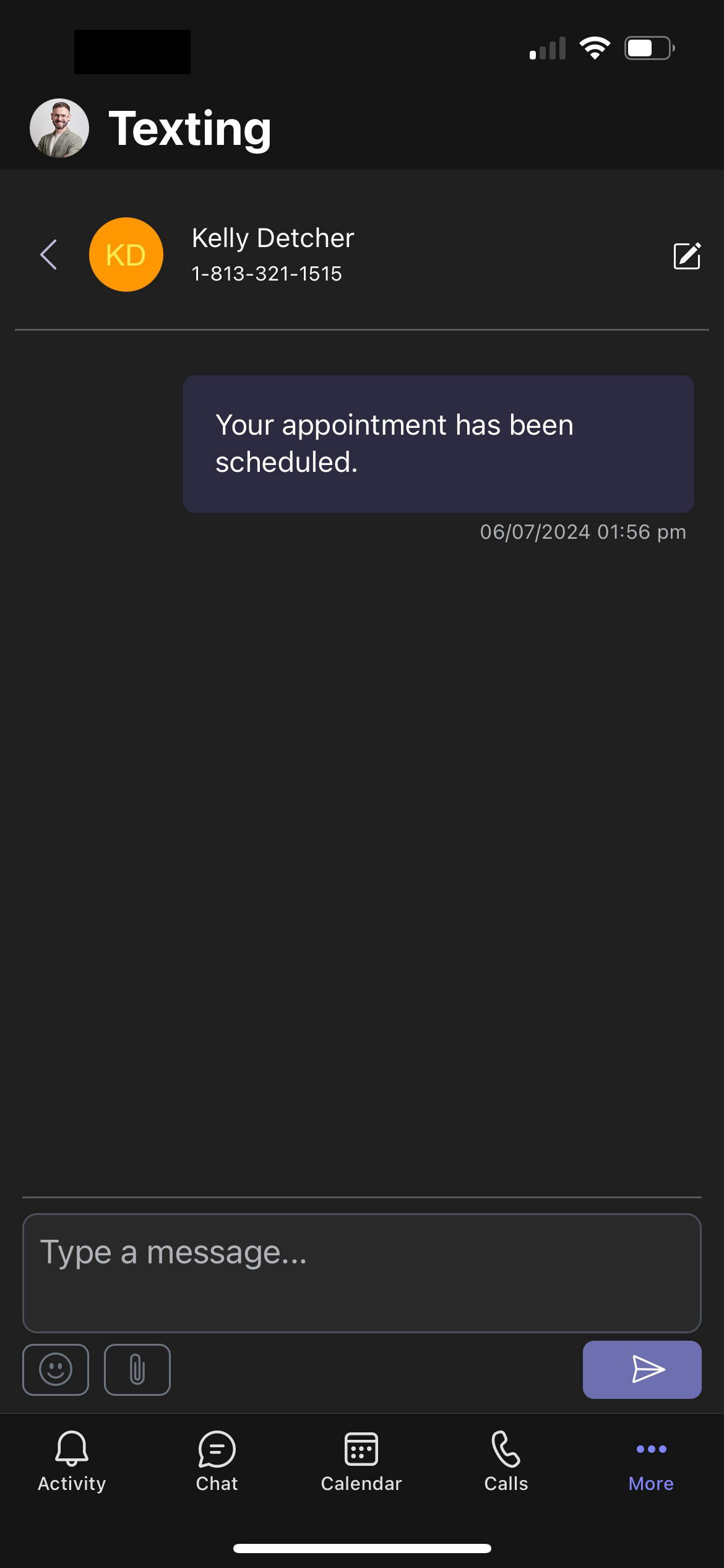 - Type your message in the Type a message field. If desired, you can add emojis or attachments. Note: Only certain attachment types are supported by carriers. Make sure your type is supported by your carrier before sending.
