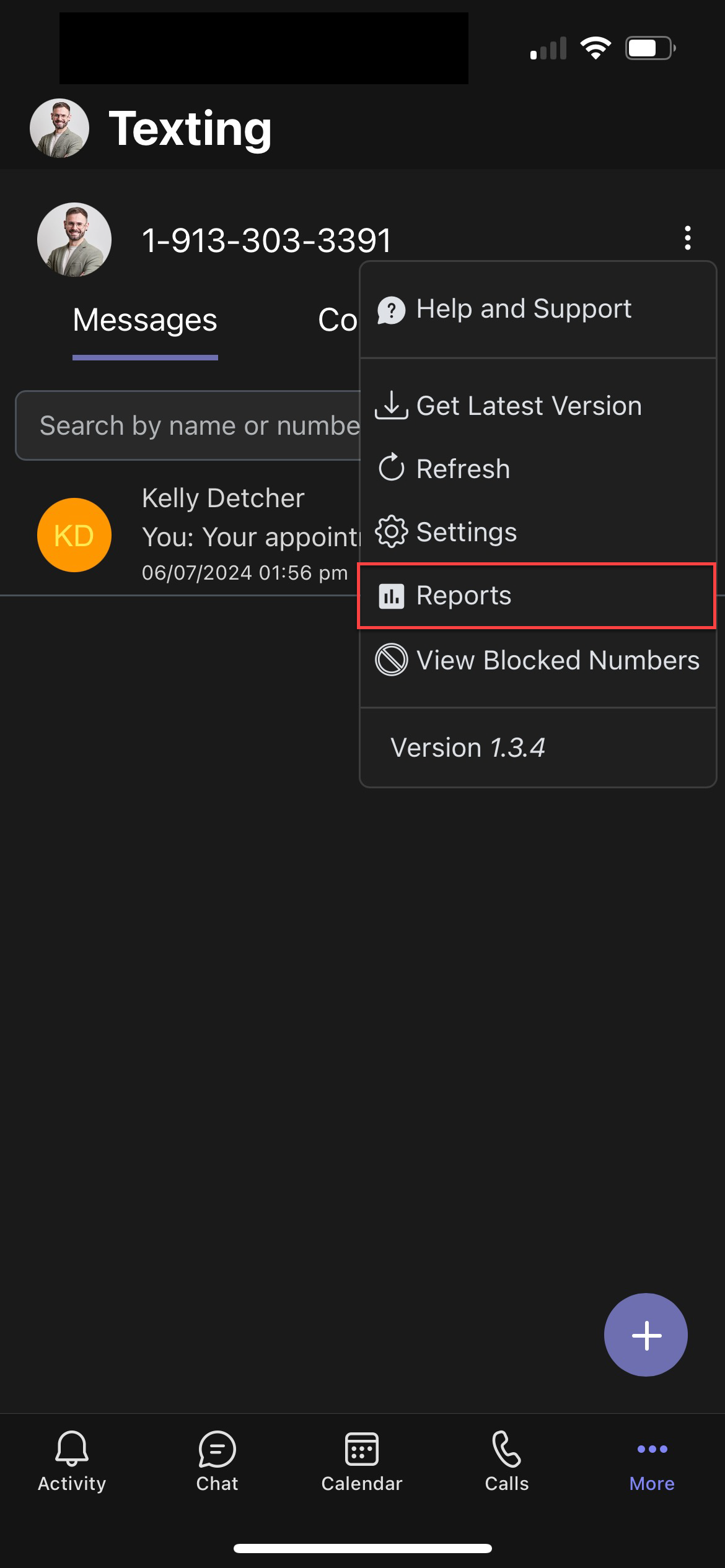 - Refresh – Refreshes your phone number, ensuring all messages are up to date and that all your outbound texts have been sent.