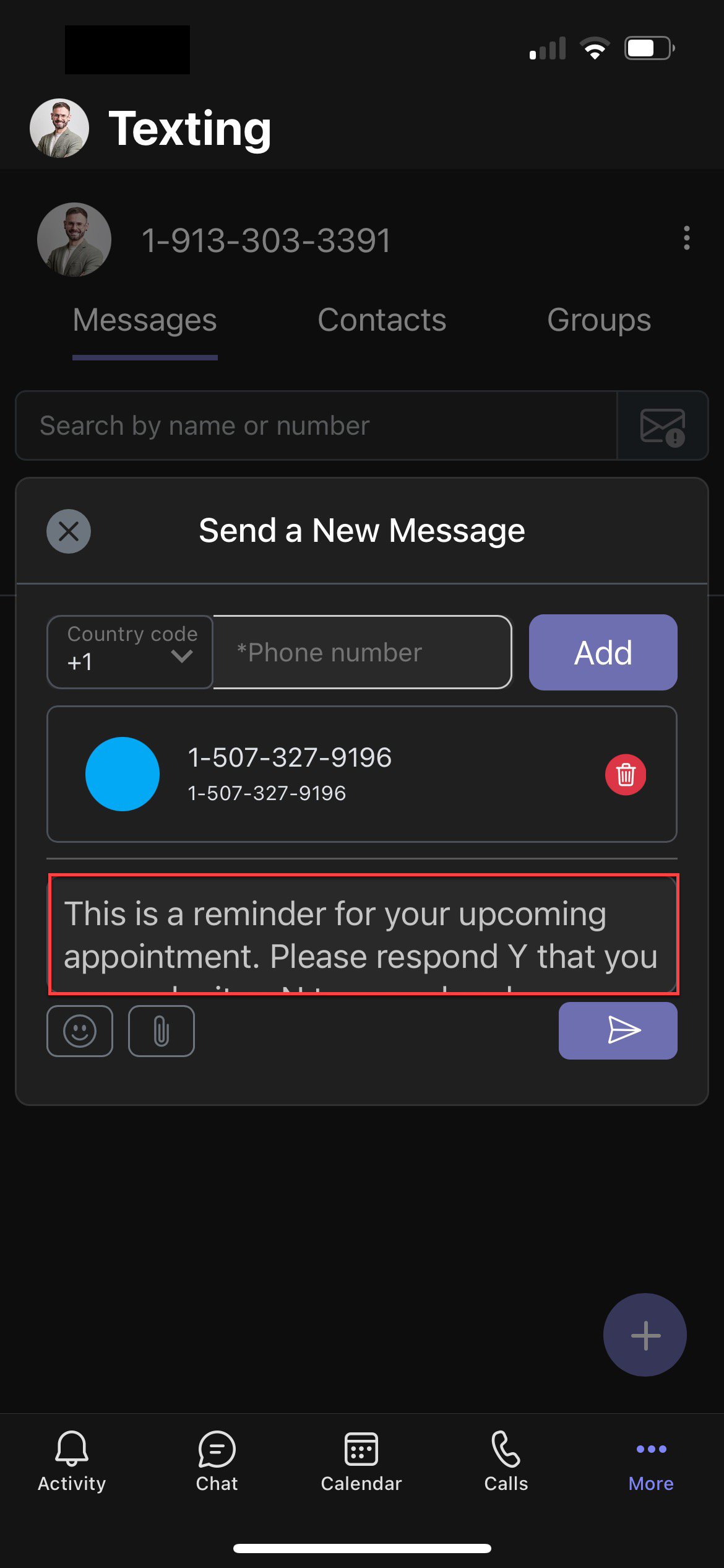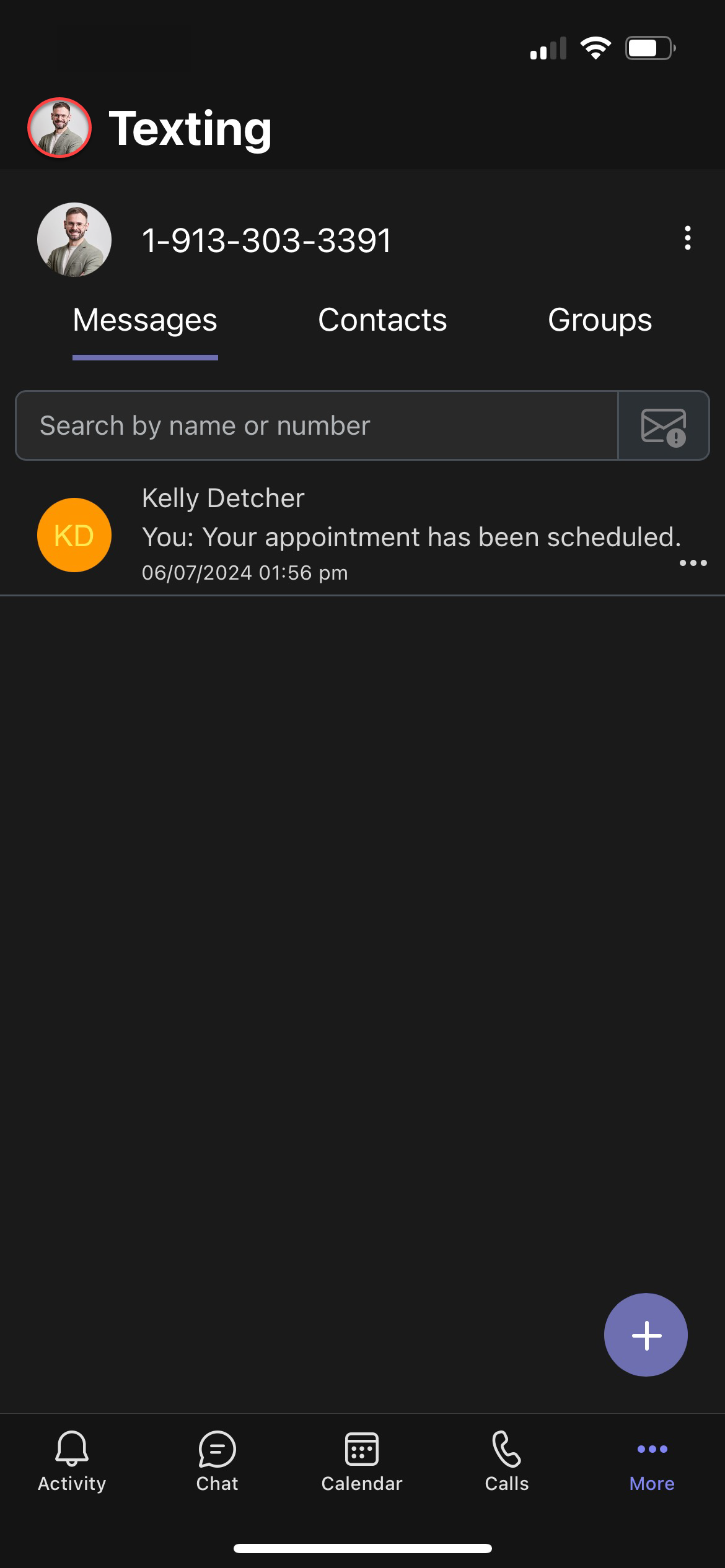 - Texting allows you to send and receive text messages from your work phone numbers.