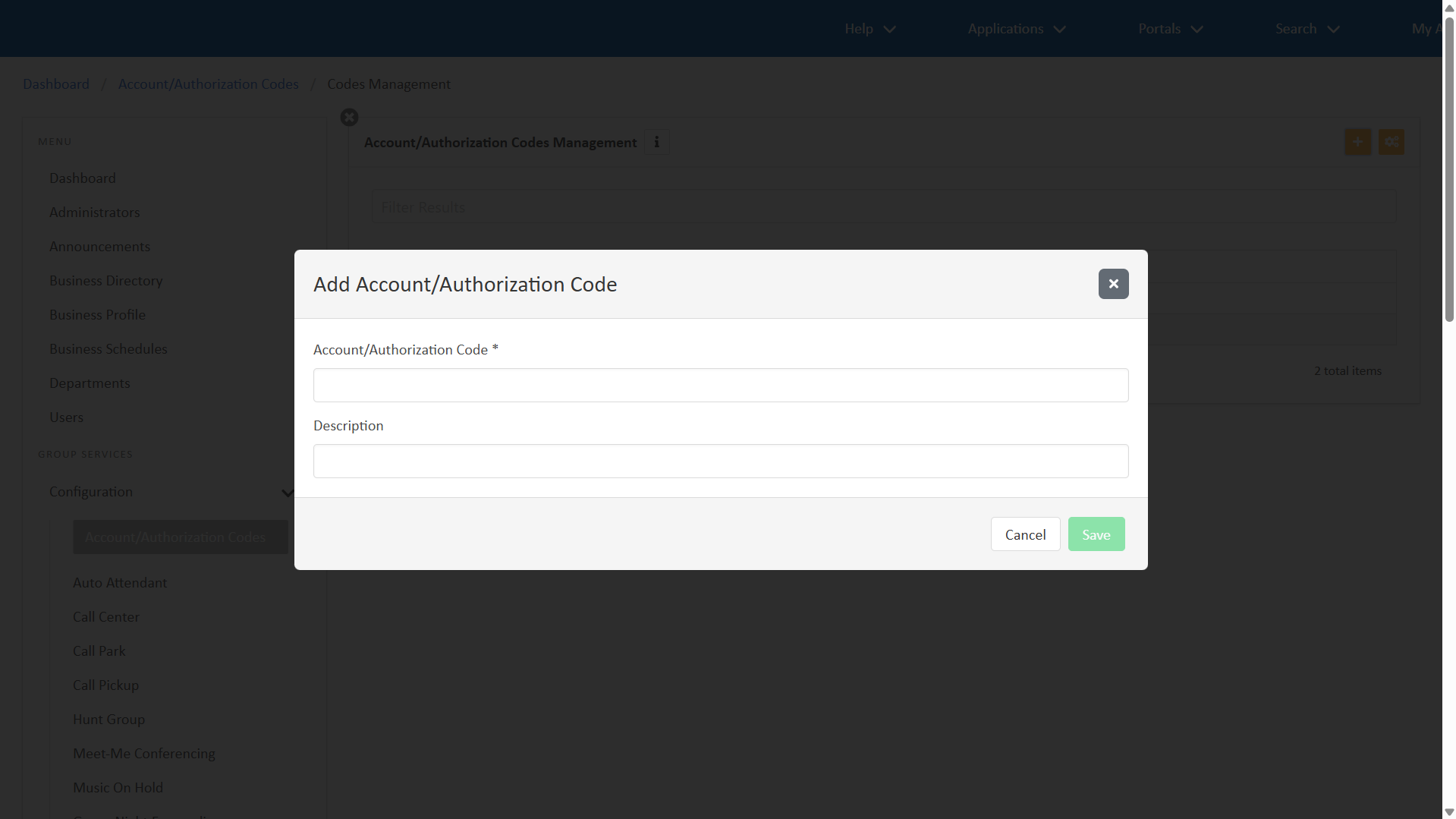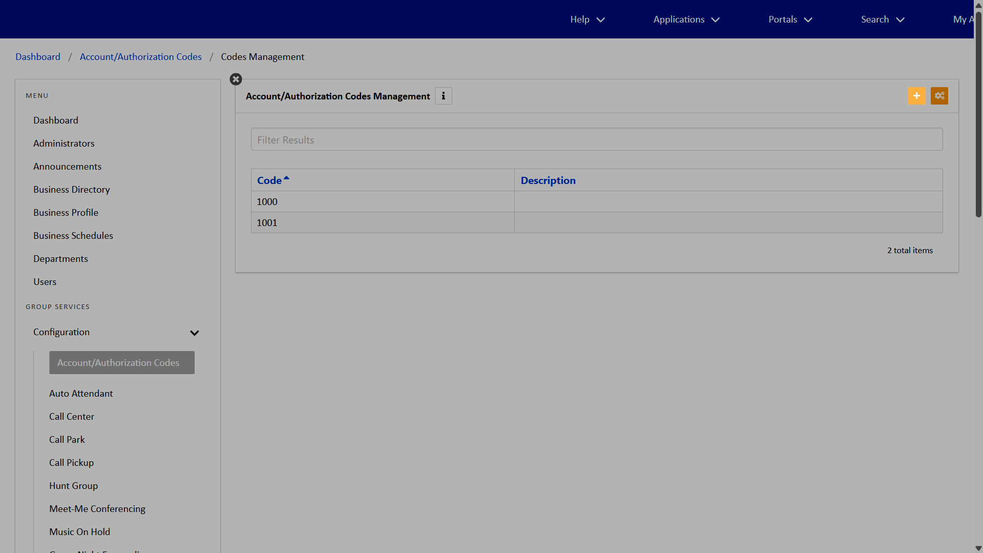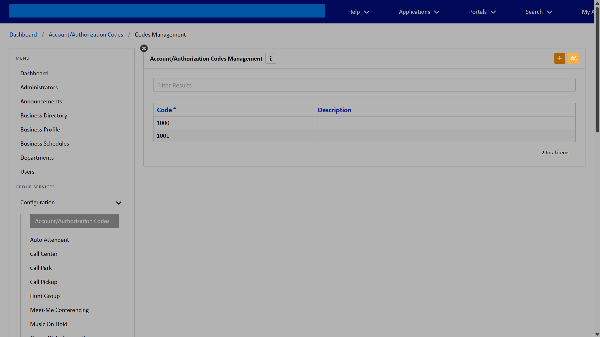 - From the dashboard, under Group Services, select Account/Authorization Codes.