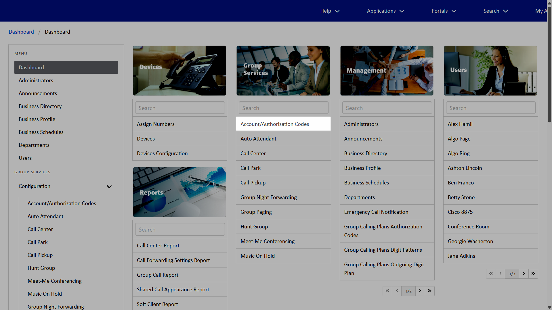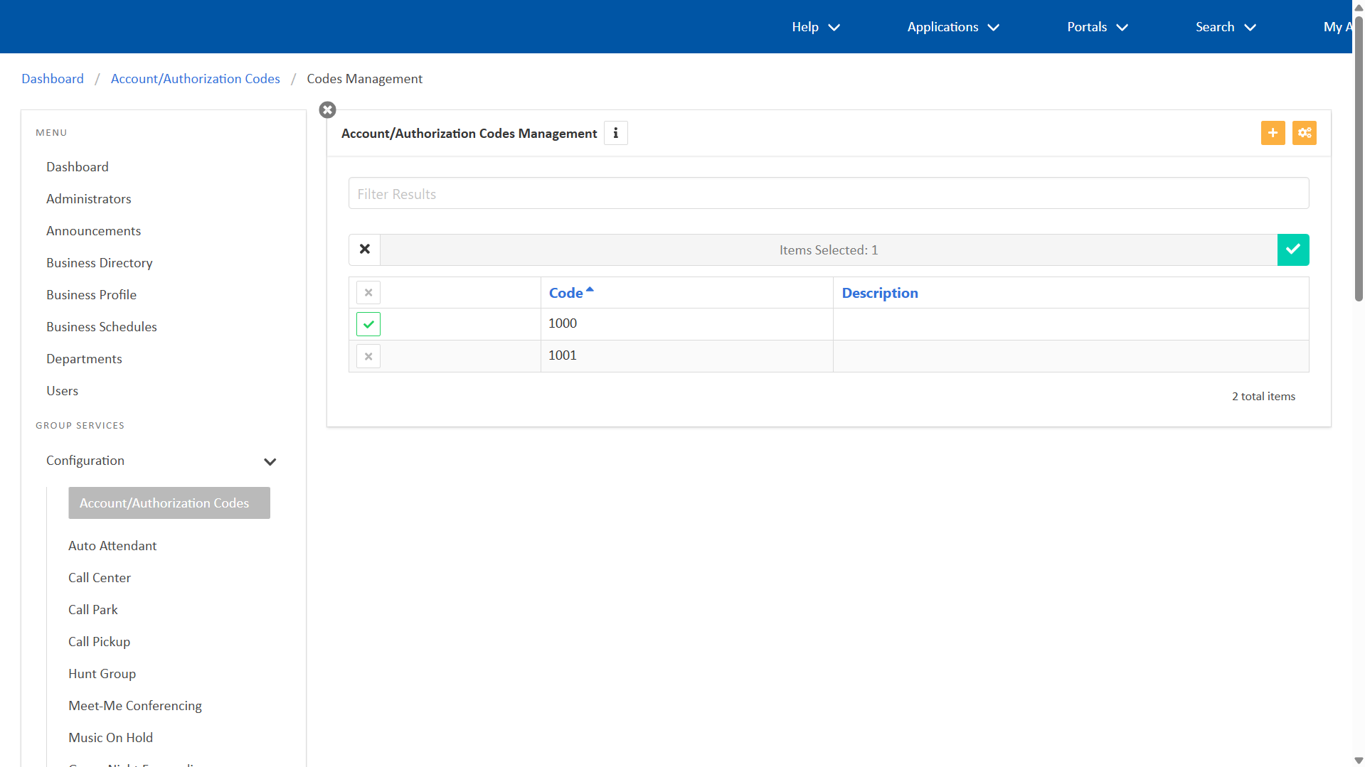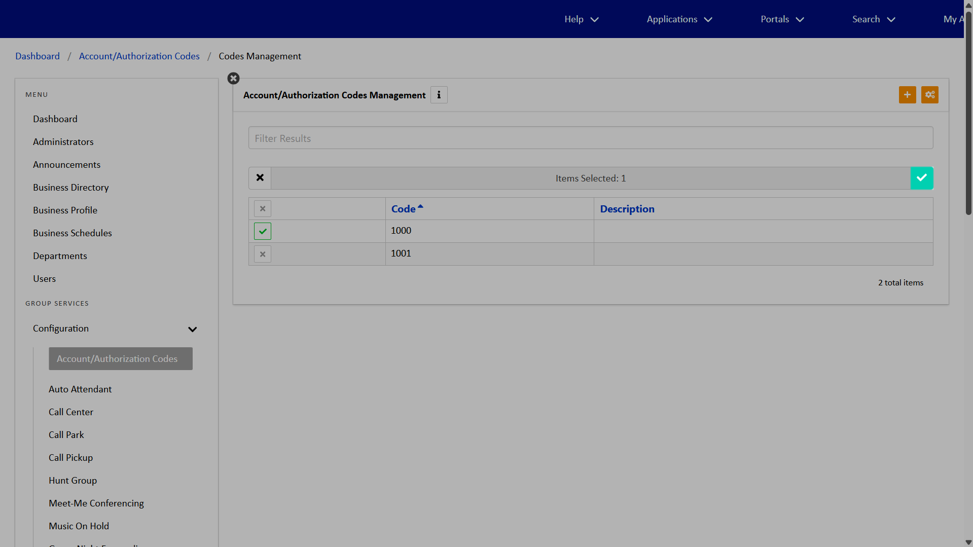 - From the dashboard, under Group Services, select Account/Authorization Codes.