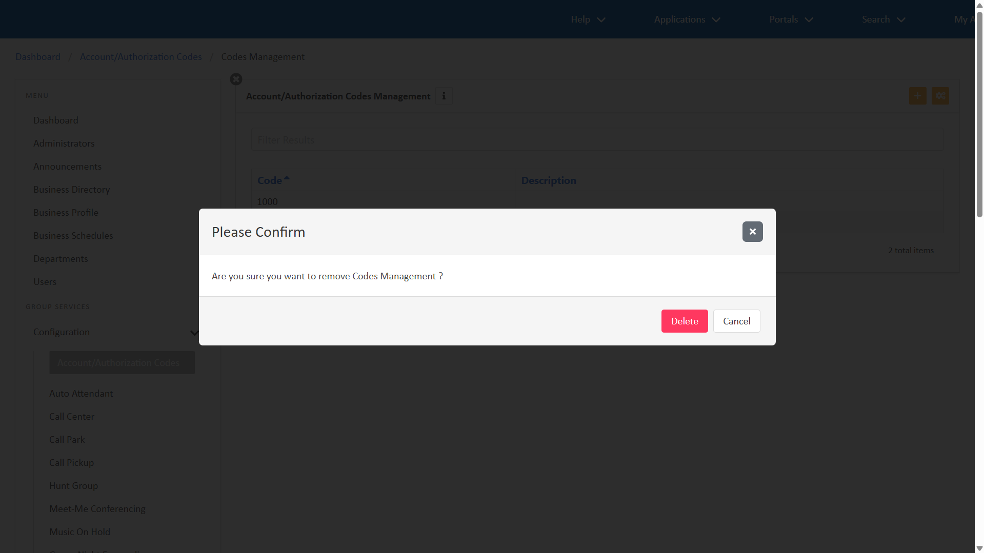 - Confirm that you wish to remove the code(s) by clicking Delete.