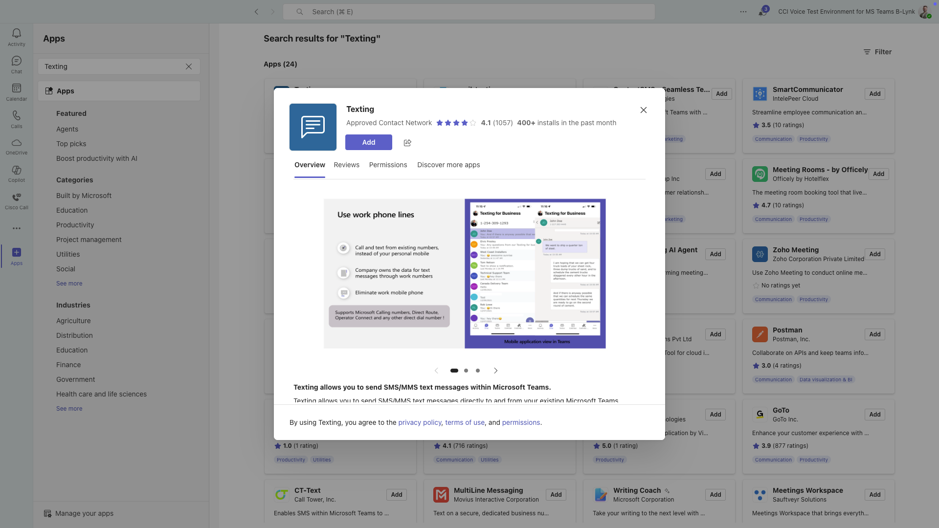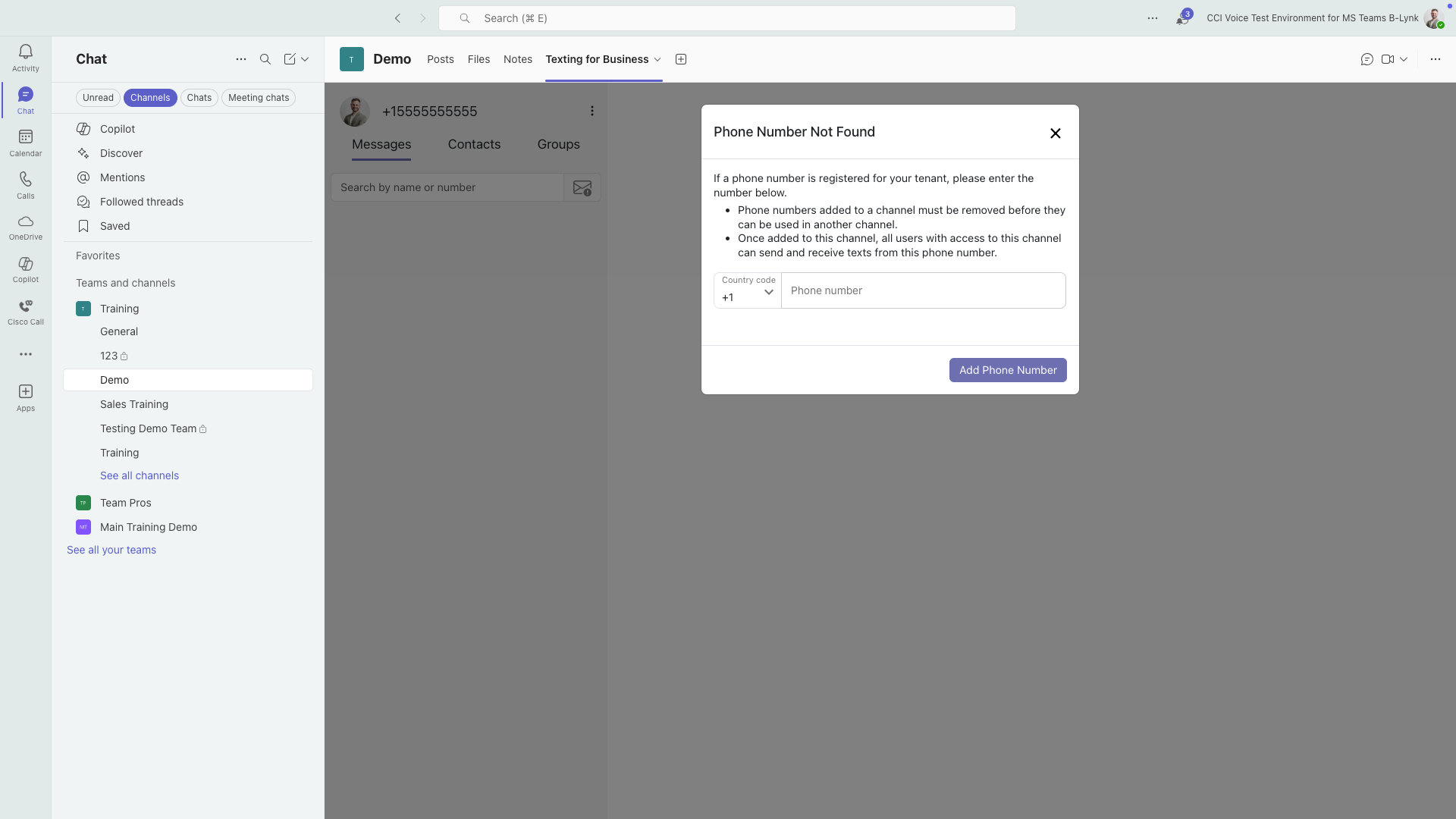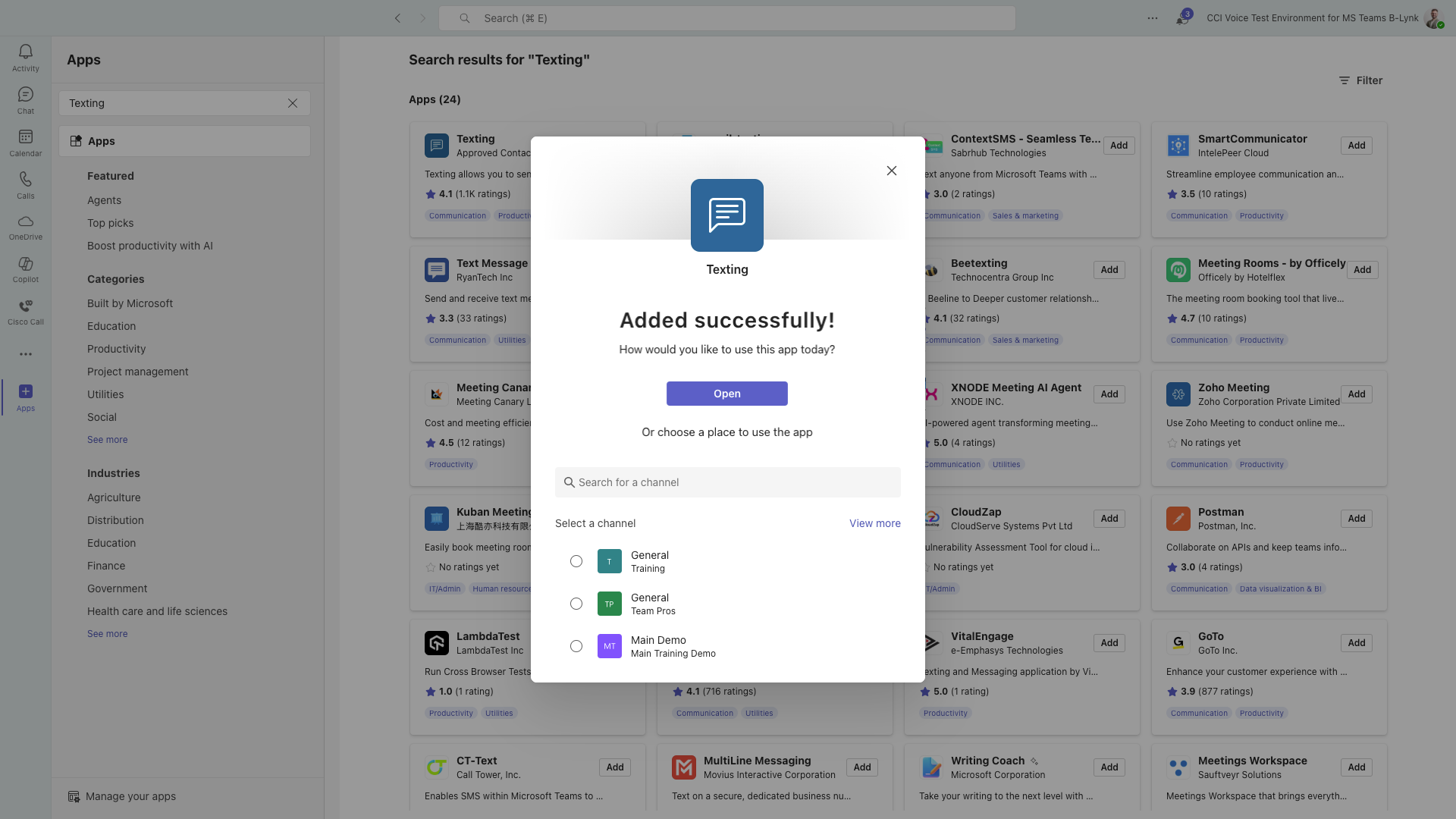 • Notifications – App notifications for Teams have a global/org setting that needs to be enabled. Check the Texting app’s global settings if no one is receiving notifications. Contact your Teams tenant administrator for assistance.